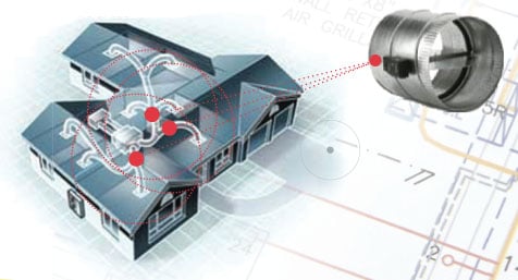 Zoning does this through a series of components. The first being motorized dampers that open and close based on the demands of the zone thermostats. These dampers insert into the ducts or can be installed at the air outlet for each room or zone. Multiple dampers can be controlled together for a single zone if multiple ducts serve a single room or zone.